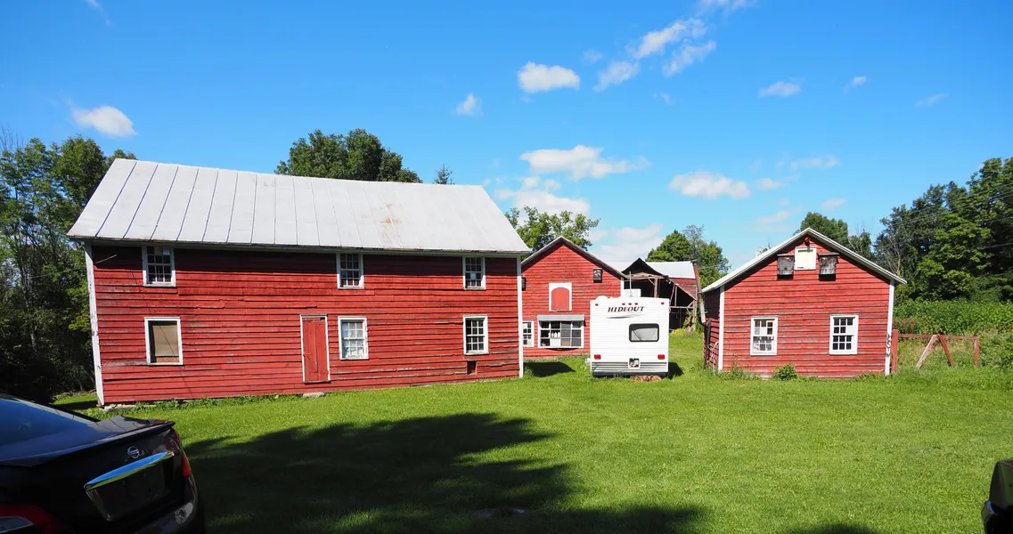 This in an area where you'll never find good buys - until now. We have a farm, one with 6 barns, part of the largest tract in the area, for sale. You can buy what you want here, up to 21 acres, 15 in hay meadows with the rest mostly lightly wooded. Mostly Burdette and Nunda soils. The fields have southern exposure with excellent views. At the southern end, there is 450 frontage on Fox Creek (only 3/10 acre is in the 100 year flood zone, no Wetlands). There is 1522 frontage on Rte 443. From here, one can easily walk to a restaurant or to the Town park.