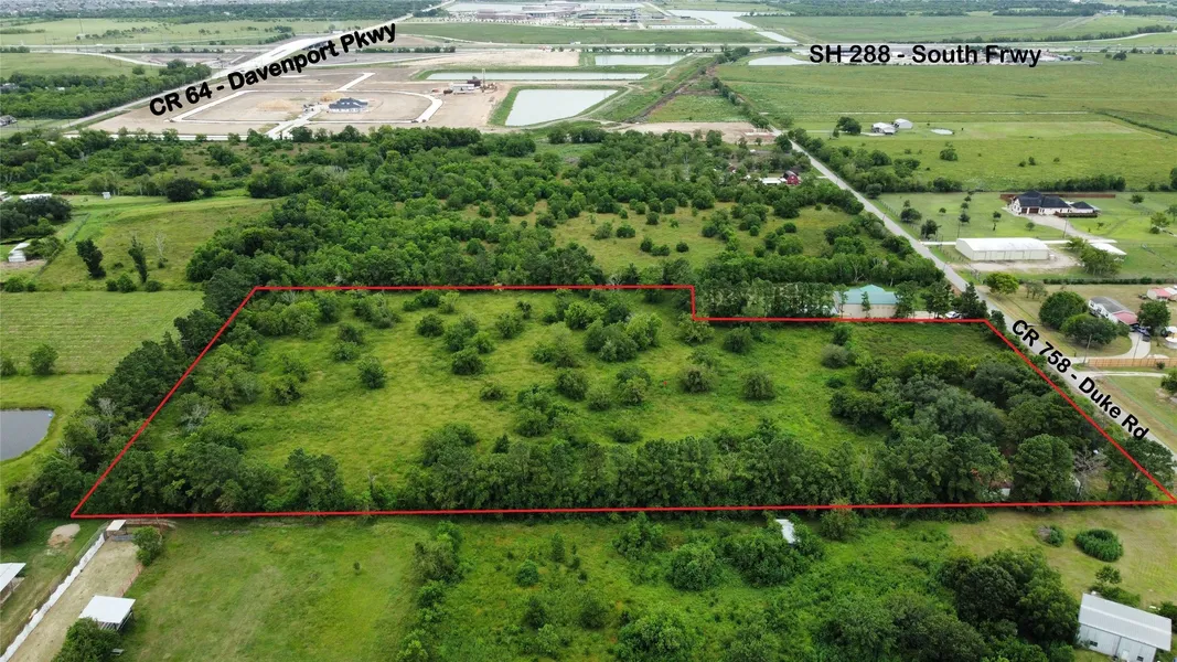 Prime 9-acre tract opportunity in Rosharon's growth corridor near SH 6 & SH 288 boasting 371 feet of CR 758 frontage. With easy access to major transportation hubs, SH 6, SH 288, SH 35, I-45 & the future SH 99, the location promises excellent connectivity & future appreciation potential. The absence of HOA or zoning restrictions amplifies the inherent value of this land, allowing for a wide range of development possibilities. Consider housing communities, commercial ventures, agricultural operations, or mixed-use developments. Enjoy proximity to Manvel & Pearland Town Centers (6 & 11 miles away), your go-to destinations for shopping, dining & entertainment. Reach Hobby Airport, Texas Medical Center, Downtown Houston, Univ. of Houston, & Texas State Univ. within a 25-mile drive. Freeport plants are 35 miles away & Galveston's Gulf Coast beaches are a pleasant 50-mile escape. Its strategic...