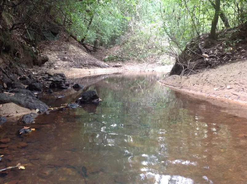 The Pea Creek tract is loaded with mature hardwoods and some pines. Bone Branch creek runs down the middle of the property before emptying into Pea Creek near the south boundary. Pea Creek then runs east across the southern end of the property. Pea Creek is a large, high-banked creek with rocks and sand and plenty of water, even during the dry season! Large, mast-bearing white and red oaks are plentiful, along with a great diversity of other native south Alabama trees and foliage. There is a briar and bramble thicket on the east side which provides a perfect bedding area for the deer. There are no roads or established trails on the property but the open understory allows for easy walking.