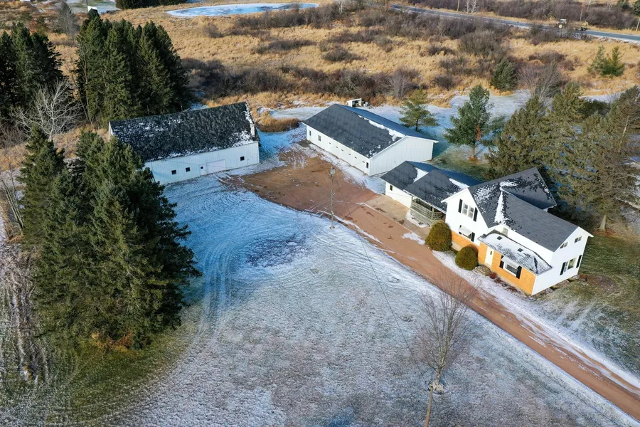 Peaceful 4 bedroom, 2 bath hobby farm on +/-22 acres. Large eat-in kitchen with plenty of storage and built-in desk area. Living room open tothe dining room. Main floor bedroom, full bath and laundry. Mudroom with storage and patio door to 3 seasons screen room. Attached garage.Detached 60x40 insulated shed with 220 amp power, 10 foot sidewalls and office. Barn with lean to, upper storage and hay mow. Land includestillable/pasture, trees and creek bottom. Excellent location on a dead end road less than 1 mile from the City of Medford. Stove, refrigerator,washer, dryer and window coverings are included in the sale price.