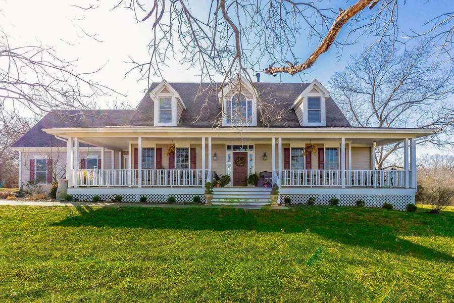 Peaceful serenity - custom built Cap Cod nestled in heavily timbered 40 acre tract on blacktop. Covered porches for outside sitting, lower level family room opens to large patio and pergola for outside entertaining. Watch the deer from the two-level great room with wall of windows overlooking the countryside. Spacious rooms with a tasteful combination of hardwoods, carpeting, and tile. Large bonus room over garage could be an additional bedroom. Finished lower level has second kitchen and areas for watching tv, game playing, exercise, and napping. Outbuilding (40x50) and shed included to store all the "toys". Hayfield could be fenced for livestock. Take a look at all this property has to offer! MLS #2253417