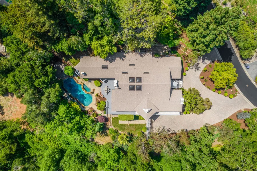Outside, the pool and spa outlined in rocks complement the natural beauty of the surroundings, while the outdoor kitchen is perfect for al fresco enjoyment. This home also boasts access to excellent Los Altos schools and is just 2.5 miles from the Los Altos Village, making it an exceptional option for Silicon Valley living.