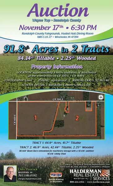 Auction Location (Link): Randolph County Fairgrounds, Husted Hall Dining Room: 1885 S US 27, Winchester, IN 47394