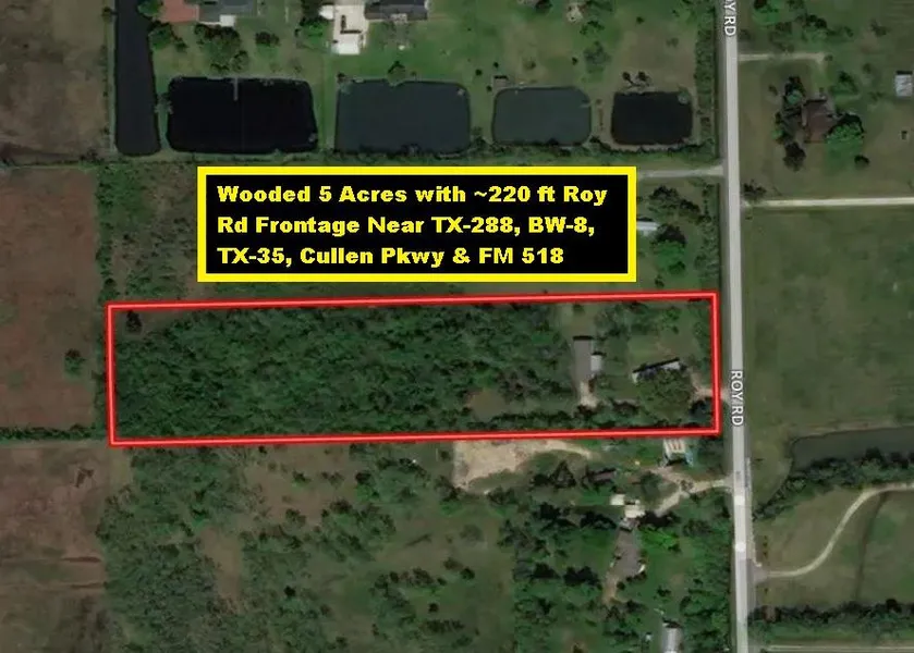 Wooded 5 Acres w/1800 Sqft 4/2 DBL-Wide Manufactured Home, 20x16 Covered Porch, Gated Entrance & ~220 ft Roy Rd Frontage in Highly Desired Area of Pearland Near TX-288, TX-35, BW-8, FM 518 & Cullen Pkwy. Residential Land is Scarce in Fast Growing Pearland. Minutes to Schools, Police/Fire Depts, Tom Bass Parks, Pearland Town Center, Recreation Center/Natatorium & Hobby Airport. Short Commute to 4 Major Universities, TX Medical Center & Houston via BW-8, TX-288, I-45 & 610-Loop. Zoned Residential. Deep Water Well w/Aboveground Storage Tank. Controlled Access. Home is Occupied! Do Not Disturb Occupants! Contact Showing Services 713-977-7469 to Walk Property. Access to Homes Will NOT Be Allowed until After Acceptance of a Contract.