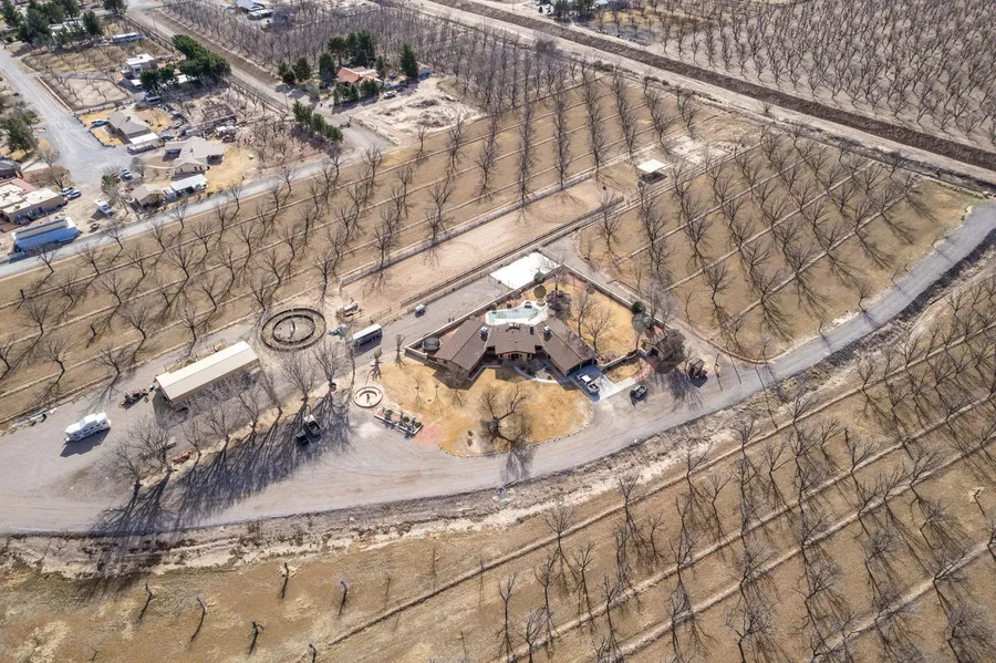 Pecan farm and equestrian estate in a prime location! This exquisite home sits on a large 22.11 acre pecan farm. The mature pecan trees surround the home and horse facilities. There are concrete irrigation ditches, 2 irrigation wells, EBID, and underground water rights. The stunning home has been recently upgraded through out. It features 3 bedrooms, 3 bathrooms, 2 car garage, oversized laundry/mudroom, beautiful inground pool, gazebo, game/hobby room, and covered back porch perfect for entertaining. This is a dream kitchen with custom kitchen cabinetry, granite countertops, stainless appliances, and a large pantry. The great room is captivating with a grand fireplace and wood ceiling beams. An extra plus is the large detached shop/office. The high-quality horse barn has all the right touches. Custom made stalls with runs, feed room, tack room with rotating saddle rack, fly spray system,...