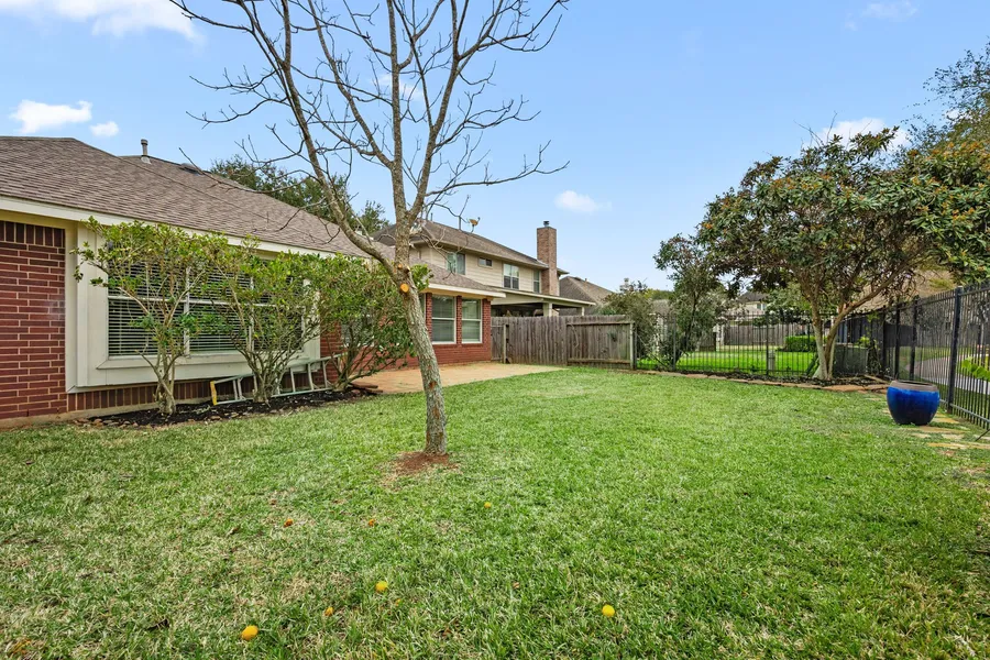 Well cared for and easy to show home on the water with gorgeous views from Primary bedroom/Kitchen/Family room. Upgrades include 2025 Luxury Vinyl Plank all rooms except baths and utility, no carpet. Foundation repaired (Allied) w/transferable warranty, recent interior paint. 2020 Roof. 2019 HVAC. 2018 H2O heater. Kitchen appliances are recent and 42" maple cabinets. Home is super clean and move in ready. Tons of storage. Crown molding. Speakers in garage/living room/study/kitchen/patio/garage. Community pool and amenities. Awesome home in desired Pecan Lakes neighborhood. Fridge/washer/dryer negotiable. Buyers will need to purchase a survey. LCISD K-12 all within 10 minutes. all information and measurements, etc. supplied as courtesy and thought to be correct, however, Buyer and/or Buyer's Agent should confirm same.