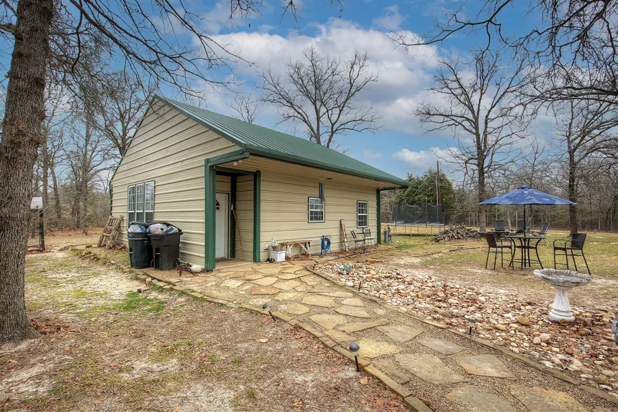 Description: Endless Possibilities for Ranchette and Animals or Develop to an RV Park for Nearby Safari and First Monday activities. Property has a Barndominium with a 2 Car Garage and Carport extension, Storage Building and 2 RV Slabs with separate Septic Systems. This is one of the prettiest places in Van Zandt County overlooking a valley with Amazing Sunsets! Sit under the Gazebo and enjoy the Peace and Tranquility. Easy to maintain with cattle in the pasture side and limited grass in the wooded area. Pond and Loafing Shed for animals! Come to the Country and Enjoy!! Watch the Safari animals in the neighboring property!