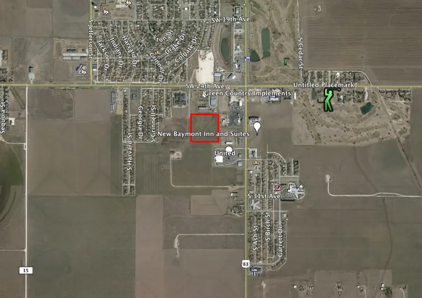 This 10 acre +/- tract is very well located on the south side of Perryton, Texas just one block off of major Hwy. 83 adjacent to the John Deere dealership.