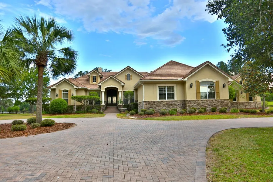 Personal Paradise - Gated Elegant estate with lit drive on 23+ acres. Main residence over 5,100 sq. ft. grand interior spaces including 5 Bedrooms, 5 Baths ample windows that create a lots of natural lightings, formal living with soaring ceilings and fireplace, office with built in cabinets, open kitchen family room with bright eating area plus theater room. Gourmet kitchen features center island, granite countertops, fine cabinetry, high end appliances with gas range, wet bar plus decorative wine cellar. Family room offers sliding glass doors that lead you to the outdoor pool. Arthur Rutenberg home with Smart house system. Master suite boasts morning beverage bar, spacious luxurious bath and access to pool and lanai. The heated pool and spa with waterfall, is surrounded by casual lounge areas with a fireplace that are perfect for soaking up the Florida sun. Covered summer kitchen area with raised counter for seating. This home is perfect for entertaining family and friends. Two bedroom carriage house with stone fireplace, kitchen is open to family room with tongue and groove ceiling plus French doors with magnificent views of the property. Spiral staircase to the loft. Covered front porch leads you to 1 bedroom/ 1 bath cottage. With easy access to fine dining, hospitals, and shopping. For your equine adventures just minutes to WEC, The Florida Horse Park and Greenways & Trails