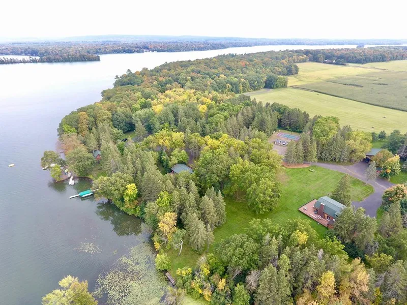 INCREDIBLE OPPORTUNITY TO OWN & OPERATE THIS SUCCESSFUL UP NORTH RESORT that includes 6 fully furnished cabins/homes (2 to 5BRs), 865' of low water frontage on beautiful & clean Red Cedar Lake w/a sandy beach, 50 person capacity lodge w/full KT & new bar, sports court, playground, 22 acres, paved interior roads, gated entrance, 50'x62' shed and MORE! Perfect for corporate or family retreat, group/kids camp, or making a lifestyle change to run your own business! GREAT CONDITION! VERY REPUTABLE! The resort being sold with MLS #1517048 -- the owner residence. One can't be sold without the other!