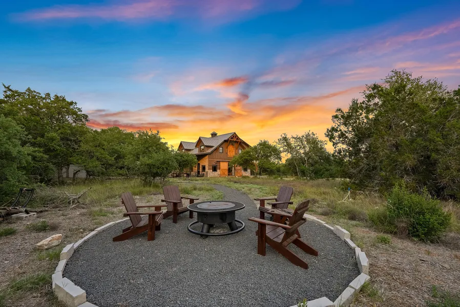 Adventure awaits across the sprawling 15-acre estate. Explore scenic trails, partake in outdoor games, or relax on the covered porches. Relax in the rejuvenating hot tub experience or gather around the fire pit under the starlit sky for an authentic Texas evening of marshmallow toasting and star gazing.