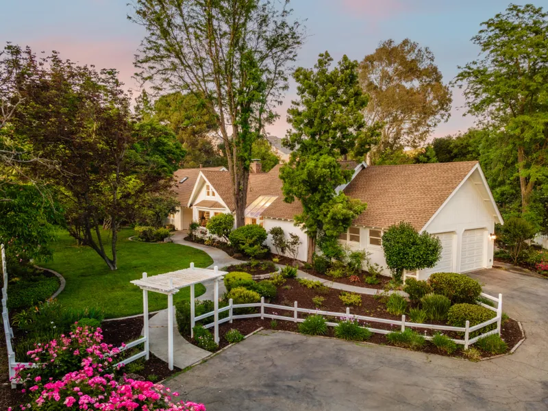 The primary suite is a serene retreat, where wainscoting and a cozy fireplace add elegance and luxury. Enjoy seamless outdoor access from both the bedroom and ensuite. The spa-like bath offers marble tiling and features a two-person walk-in shower, deep soaking tub, dual sink vanity, and an oversized walk-in closet. This wing is complete with three secondary bedrooms, two full baths and a laundry room. Step outside to the expansive grounds, offering views of distant hillsides that create a picturesque backdrop. Here, a lush lawn, gazebo, spacious deck, and sparkling pool invite relaxation and entertainment. This outdoor oasis provides an endless amount of possibilities with the potential to expand by adding a barn, ADU, or sport court. Located within close proximity to Danville, shopping and dining at the Blackhawk Plaza, and an award winning school district.