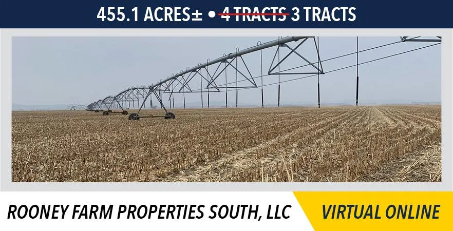 The Rooney farm contains a total of 455.1 acres and will be sold in 4 tracts 3 tracts. All 3 tracts represent highly productive, nearly all tillable Mississippi River bottomland and is located in the Sny Drainage District. Tracts 2 and 3 are improved with Valley GPS ready center pivot irrigation units. Contact auction managers for additional information.