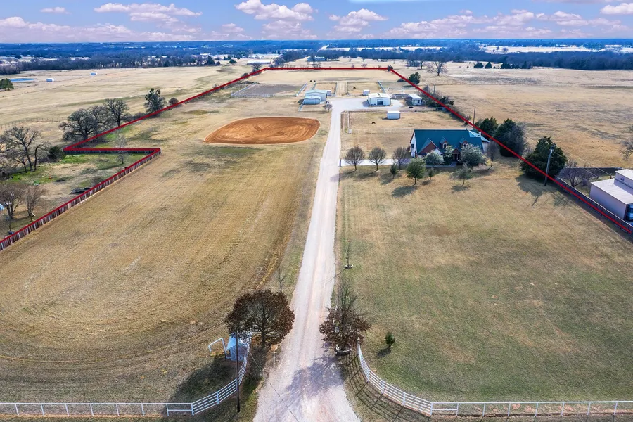 Classy and immaculately maintained 19-acre horse property between Aubrey and Pilot Point offers a custom home, horse barn, lighted arena, kennel, hayfield, and good sandy soil.