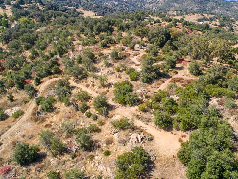 Oaks and rock formations in the general area give this site privacy and character. Several oak varietals including Scrub, Black, Coast Live and Engelmann are found throughout the property. Lush Manzanita and White Sage are abundant creating a fragrant and colorful serenity. The surrounding area is sparsely populated with custom homes and ranches blending into a landscape of rolling hills and valleys. Wildlife is abundant in the area: deer and turkey, bobcats and fox roam freely, while raptors and other rare species of animals can still be found here because of the abundance of water and cover in this rural area.