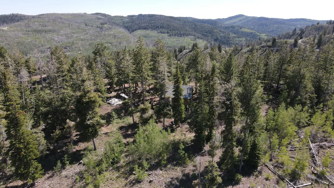 Cabin located within Pines and Quaking Aspens for your off grid living. Land is flat around Cabin to steep slope lower section of lot. Great access to Lower has pocket of Pines and Quaking Aspens is easter boundary section... then your walk is gradual and sideways. Northwest lot has a area for water you bring up providing downslope pressure to Cabin. Generator or Propane for power.