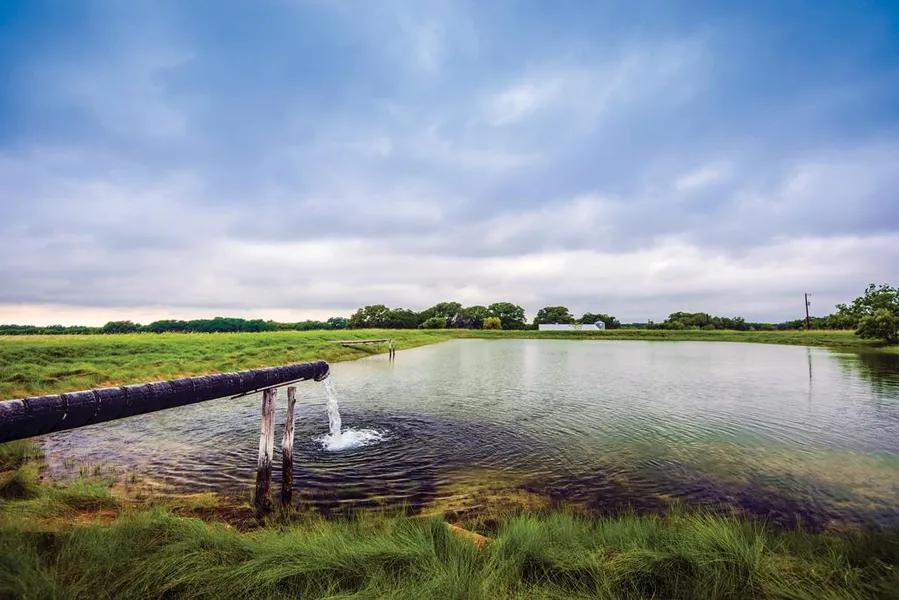 A second artesian well produces about 60 gallon per minute. Its ever-present water helps drought-proof the ranch. The water flows into a system of six-inch PVC pipe that connects the artesian well to all of the ranchs stock tanks, ensuring they will never run dry. All of the tanks have been stocked with black bass, sun perch, and catfish for hours of angling fun.