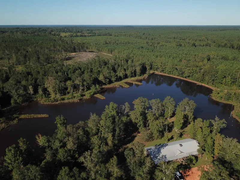 Exceptional offering in south Alabama! PKD Timberlands is 326 acres of woods and water featuring a beautiful Dog Trot cabin, a nine-acre lake, and outstanding deer and turkey hunting. Located in north Conecuh County, near the small town of Georgiana, this is a high-end recreational tract and timber investment that offers something for everyone. The 2,800 sq ft Dog Trot cabin has six bedrooms and five full bathrooms and is ideal for large family gatherings or corporate retreats. Remote and secluded, it has all the conveniences of home while providing that special, in the woods feel. The stocked lake and a smaller pond are loaded with large bass, bream, and crappie. The mix of hardwoods and planted pine plantation, along with open fields and creeks, create outstanding habitat for the wildlife. There are several well-established food plots ready for you to hunt during those crisp, fall days. Whether this is your retreat or permanent residence, you can relax, hunt, fish and enjoy the peace and quiet in privacy and comfort.