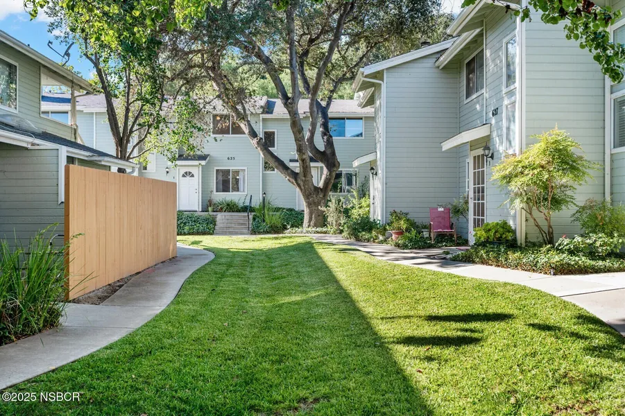 Tucked into the back of Central Plaza - a darling storybook complex of 16 Cape Cod style attached residences is this refreshed two-story home! Just beyond the private grassy courtyard, this 2 bedroom, 1.5 bathroom townhouse includes a private balcony and patio with views over the serene hillside behind filled with oaks, native plants and wildlife. A canopy of trees create an archway above the path to the front door, leading to a lovely living room with LVP flooring and understairs storage niche next to the convenient half bathroom with custom tile backsplash. Moving deeper into the home, find the dining area with a sliding door to the private back patio with room for barbeque or spa, bordering open space. Adjacent to the dining area is the updated kitchen with quartz counters, breakfast bar, farmhouse sink, new flooring and paint, gas stove, pantry and a garden window showcasing a restful hillside view. Upstairs are two bedrooms with storage... one with Juliette balcony, darling full bath with tub/shower and a convenient stackable laundry. The home includes covered carport parking with storage. This woodsy, beautifully maintained community lies in the friendly town of Buellton, blocks from the public elementary and secondary school, great local parks, PAWS dog park, and great shopping, dining, wine tasting and microbreweries and outdoor activity options. In the heart of the Santa Ynez Valley within a six-mile radius of four adjacent storybook villages: the Danish city of Solvang, the western town of Santa Ynez, and the Rockwellian rural communities of Ballard and Los Olivos, Buellton enjoys an inviting Mediterranean coastal climate with warm summer days, cool marine-layer influenced evenings, and mild winters. This lovely home is a delightful affordable option to own your own home in the gorgeous, unparalleled Santa Ynez Valley. Sellers are offering $2K credit at the close of escrow to the lucky buyers who submit their offer by 11-10-2025 and successfully close escrow. Welcome Home!