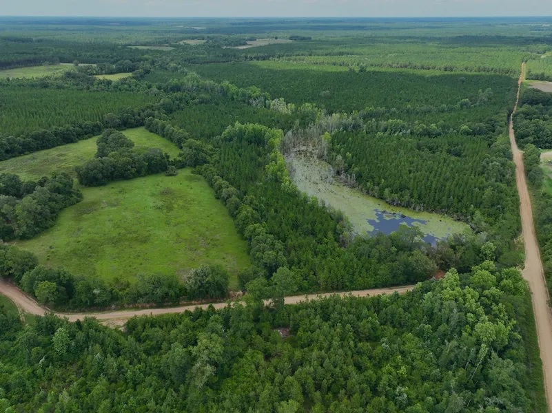 Check out this excellent timber investment tract with hunting and fishing. Very few pieces of land feel this secluded while simultaneously having a 4-lane highway and county road frontage on multiple sides. Access is not an issue for this farm, with entry points on two sides of the main tract. There are two triangular parcels split off from the center portion by the roads, each of which is approximately 3.5 acres. These areas could allow for the construction of a home or cabin without disturbing the main property. There is power along all three roads that border the property and a power line that runs into two of the old field areas on the southern end of the farm. One of the neatest features of the terrain is the serene pond that is surrounded by brushy forests. This creates a paradise for fishing or waterfowl hunting. The thick pine plantations have a near-perfect stand and should be r...