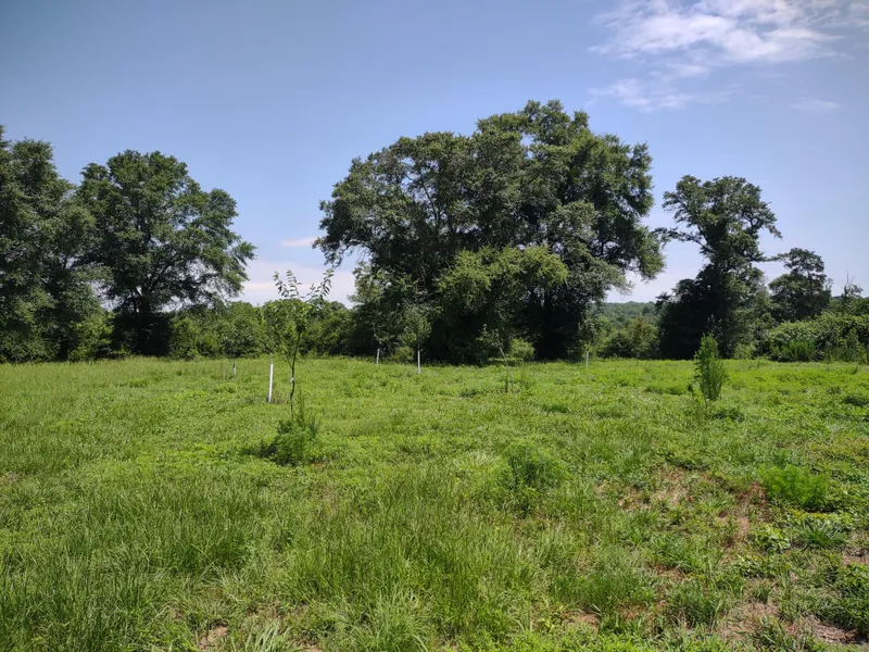 Description: This is a 30-acre property that will work perfectly to build on and to hunt and garden. It is gently rolling and is almost all high and dry usable land with nearly 900 ft. of paved road frontage. Only 3-4 acres of this property is considered in the flood zone and that is all the way at the far end away from the road. There is a cleared area just off the road and behind a buffer of trees and plum bushes. The opening has an assortment of young fruit trees planted in rows. There happens to be a great view of the valley from atop this gentle hill looking to the North East. There is a wildlife plot at the lower end or the back of the property with a nice shooting house overlooking it.