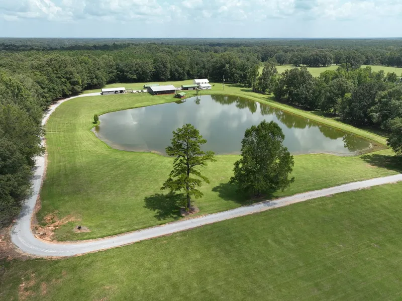 The pond is generously stocked with bass, brim, and catfish, offering endless opportunities for fishing enthusiasts. The barndominium features two bedrooms, two full bathrooms, and a spacious living room. Step out onto the front porch, and you'll find yourself mere steps away from excellent fishing, making it an ideal spot for cookouts and fish fries at the picturesque fish house on the pond's shores. The second house boasts three bedrooms, two bathrooms, and over 2,000 sq ft of living space, making it a cozy and inviting.