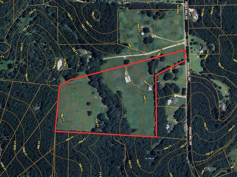 The land boasts rolling terrain, border timber, trail networks, and multiple building/garden sites. A highlight is 2,500+ feet of Mobley Creek frontage, spring-fed with year-round flow, shoals, and beach areasperfect for recreation or relaxation.