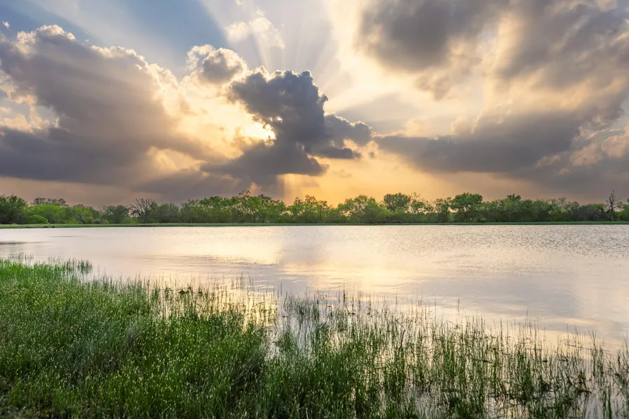 The property features gently rolling terrain with a diverse mixture of mature hardwoods, including live oaks, post oaks, and a high-fenced pecan grove. The landscape provides scenic views and privacy, with abundant shade provided by the oak canopy. Both sides of Randolph Creek run through the property, offering a natural water feature and enhancing the appeal of the land. The property also boasts a 7-acre lake and a 1-acre pond, perfect for recreational fishing, wildlife viewing, or simply enjoying the tranquility of nature.