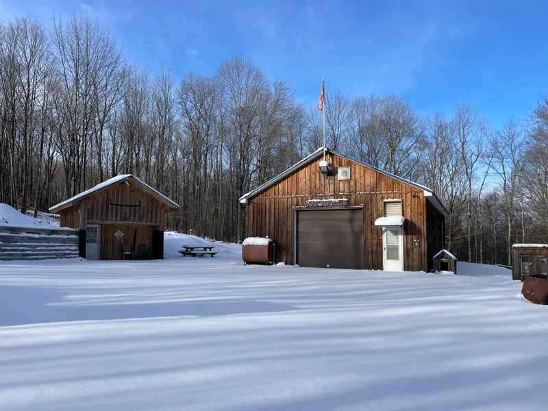 Just 1 1/2 miles from Gilbert Lake State Park for swimming, camping, boating and recreation and 30 minutes to Cooperstown and the Baseball Hall of Fame. The perfect base camp for snowmobilers, an art studio, or a commercial enterprise. The garage currently incudes a hydraulic lift for vehicles, a commercial air compressor, in floor radiant heat, a half bath and a bar. The sound system, lights and artwork are incl...