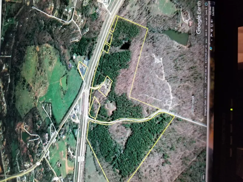This commercial potential family owned assemblage is located at the main traffic light on highway 129 in the city of Arcade and is the best location in the area for a large retail.Please contact the agent before any showing. Additional acreage of 64.78 acres located in the back of the subject property totaling 140.78