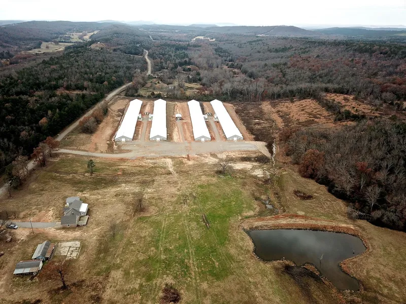 This is an amazingly rare find. Four brand new construction boiler houses. They are the larger 54’x550’ houses with an OK Foods contract. They sit on 87 acres at Driggs Arkansas, along with a beautifully remodeled farm house. There is both rural water and well water from 3 water wells and there is room to build more poultry houses in future. This is a top notch farm and won’t be on the market long. Please call to set up your personal tour of this excellent poultry farm.