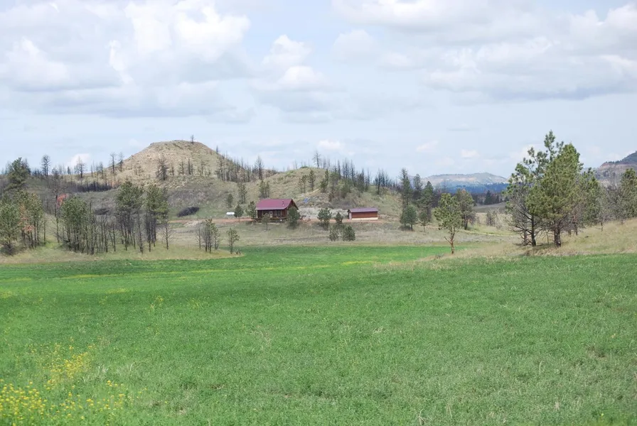 Buildings: This property also features a turn-key hunting cabin (sleeps 10 adults) with a large covered deck overlooking the hay fields. The cabin is solar powered and is heated with propane and wood. Detached shop/garage.