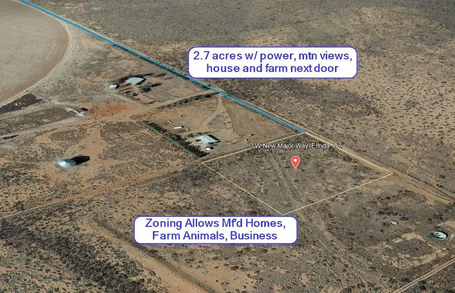 2.7 acres of land for sale in Arizona with homes and a farm on the same street, power to the property, favorably zoned R-36 for manufactured homes, mobile homes, farm animals, and with special use authorization: home businesses such as construction, warehousing, animal husbandry, recreation facilities, manufacturing and more. This property is 3.7 miles from Highway 191, 33 miles to the Chiricahua National Monument and mountains, 30 miles to Leslie Canyon National Wildlife Refuge and 102 miles to Tucson. The land sits at 4,638 ft elevation with mild summers great for camping, off-roading and exploring. There is a gas station, library, auto service shop, grocery store, and restaurants 12 miles away in Elfrida on Highway 191 for all the amenities you need. Have a place to go outside the city for weekend adventures and order today!