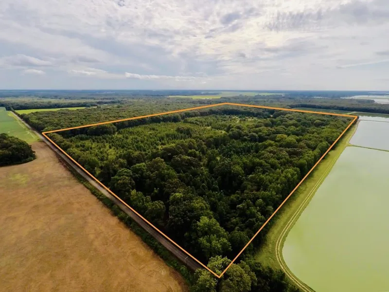 Good hunting ground is normally all about location and habitat. This tract is in the right spot, in the right county with all the right habitat. To start, the topography gives you a prominent change in elevation and with that you get different types of cover and scenery. The north and west side has a nice creek that meanders through the tree filled bottoms giving the wildlife a great place to bed, browse and drink without being disturbed. The "top" of the property has a great road system, food plots, grown up fields for bedding, shooting lanes as well as hardwood trees that are loaded with acorns. Muscadine and persimmon trees are also very prevalent on the property. The deer are all over the place and have been allowed to grow showing the real potential to harvest trophy animals. This farm attaches to a much larger block of timber that is surrounded by beans and corn.
