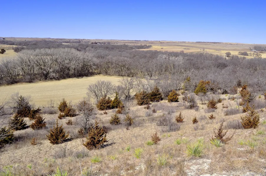 This Northwest Kansas hunting ranch encompasses many distinct characteristics that separate it from any other hunting property in the nation. When entering the gates at the only entrance to this property, it is apparent you are driving into something very special. Upon pulling into the drive of the large limestone home and outbuildings at the farmstead on this property, deer rubs can be seen along the creek edge, and turkey tracks are imprinted everywhere on the ground below. Turkeys can typically be seen and heard in the alfalfa fields throughout the day. The heavily wooded Paradise Creek winds through this land for nearly 1 ½ miles providing a large travel corridor and exceptional bedding for the deer. The tree cover expands nearly 350 yards into the flats running along the creek in certain areas. An abandoned railroad ridge creates more timber edge along the creek creating smaller pockets of alfalfa acreage that is nearly fully enclosed by trees. These are perfect hunting plots during deer and turkey season. Fertile bottom crop fields line the timber edges and provide a pallet of beneficial food sources for the many whitetail deer and hundreds of turkeys that call this property home. The seasonal creek provides a steady water source throughout most of the year, and there are also multiple water wells and pond dams on the property. Large thicket and cedar lined bluffs tower over the creek bottom to the South leading into deep timbered cuts and canyons which serve as sanctuaries and escape routes for whitetails pressured from the surrounding creek bottoms. These timbered canyon areas throughout the 500 acres of grass to the south create a safe haven for whitetail deer. This is typically where the mature whitetail bucks bed down in the daytime before making their way to the crop fields and creek bottoms in the evenings. This area along Paradise Creek is well known for trophy whitetail genetics, and QDMA is a strong practice on neighboring properties. Over the years many Boone & Crockett whitetails have graced this area, and a few 180-200+” deer have been harvested in this area in the last few years. This property has all the elements needed to hold, grow, and attract whitetail deer, turkeys, and quail. The sky is the limit when owning a large, contiguous piece of creek bottom, canyons, timbered cuts, food plots, and water in an area like this. Contact me today to schedule a viewing of this incredible property.