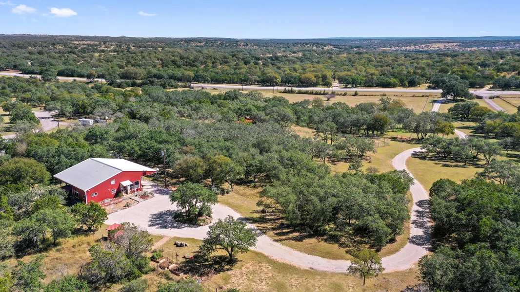 10 Acres minutes from downtown Johnson City! This property has endless opportunities. The access is great with over 400 ft of Hwy Frontage on US HWY 281. The property is well groomed and offers some spectacular live oak trees. There is a fabulous 3 bed 2 bath bardominium on site that is only a few years old. The house will be sold furnished and move in ready. The Master Bathroom features an excellent jacuzzi tub. The total under roof area is approx. 50ft x 60 ft. There is a nice awning that creates great space for parking etc. Also on site is a great little studio. The property also offers a nice lean-to style barn that would make a great horse or livestock shed. Property is cross-fenced for livestock. Water well with 2500 gallon holding tank is in place along with septic system and electricity. 50 amp electrical service is on site to accommodate RV's. Light Restrictions. This is...