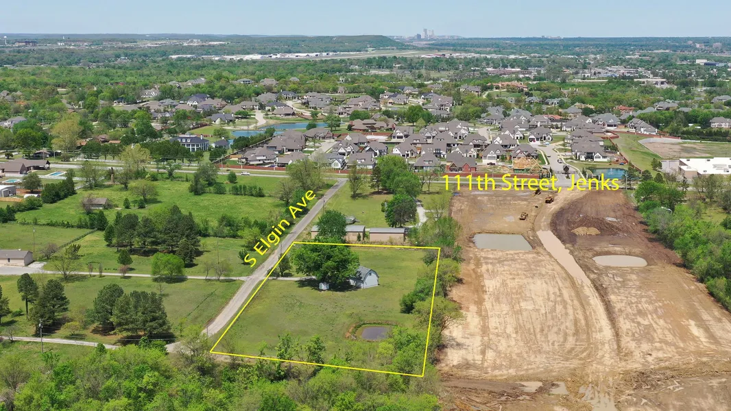 Prime acreage in Jenks School district located just SW of the intersection of 111th and S Elm Street. This property is located next to a new gated addition called the Estates of Ritz Hollow. Access is via S Elgin Ave off 111th. The property is chain-linked fenced and currently has a 2-story barn and small shed. There are not many acreages left in Jenks for building or developing so come check this one out quickly.