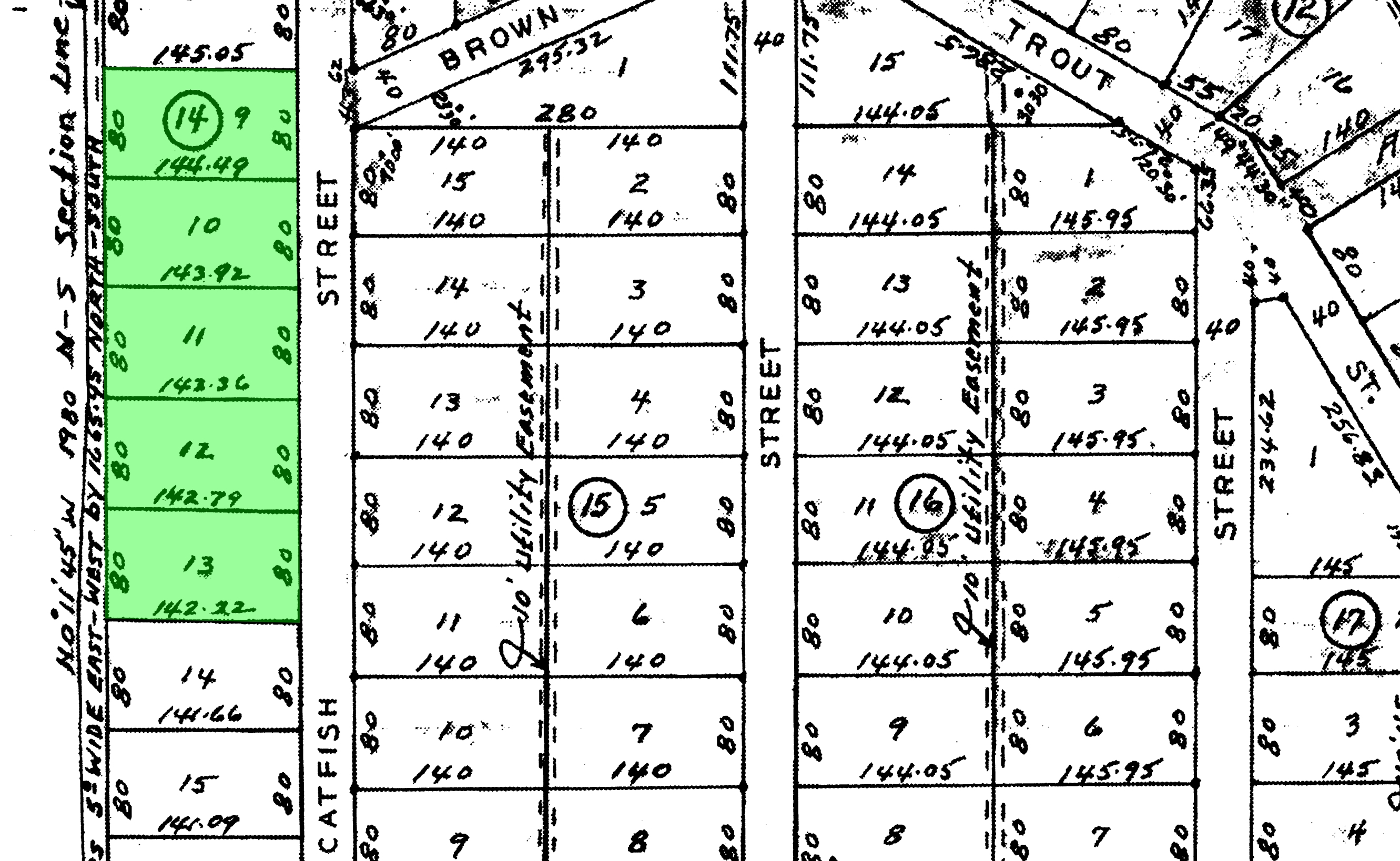 These lots sit along Channel Catfish Street, a good gravel road. Electric lines run along the east side of the properties.
