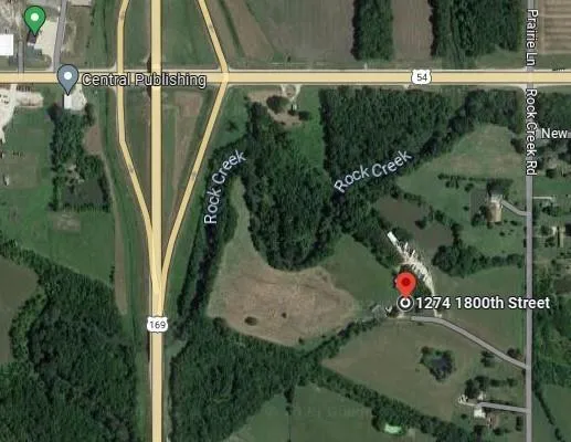 Research Parcel InformationFrom US-169 exit E onto US-54 E. Turn S onto 1800th St/Rock Creek Rd to property on right.
