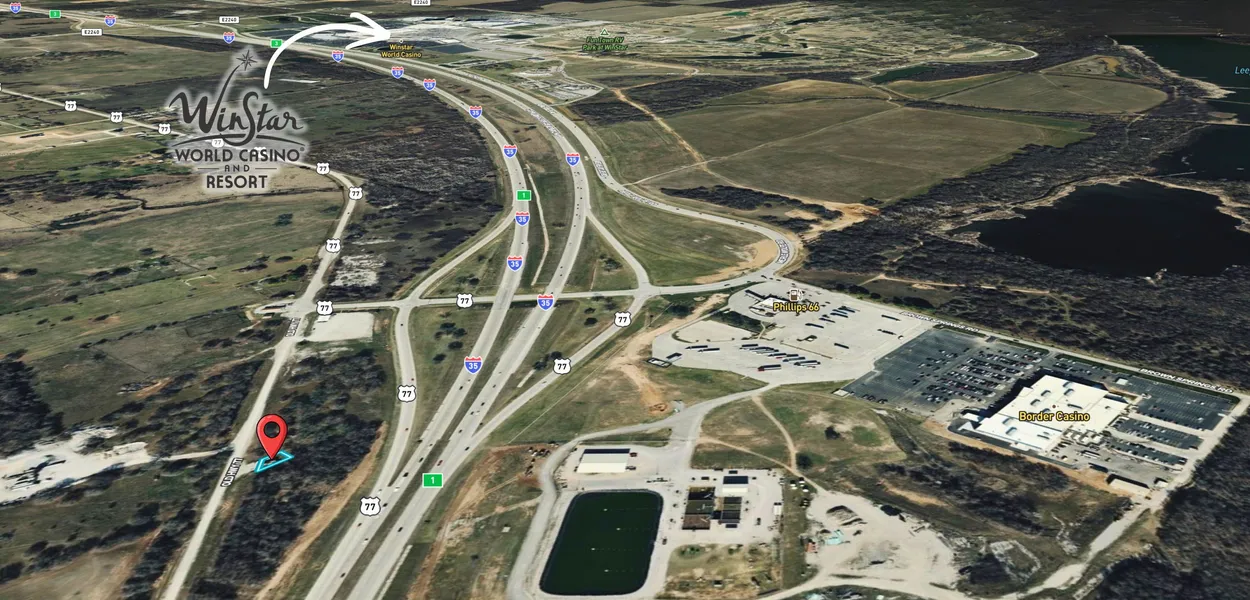 This exceptional lot offers high visibility and convenient access off Hwy 77. Located directly across from the bustling WinStar World Casino & Resort. Utilities are already in place, including water, electric, and septic for 2 RV hookups. Ideal for development, commercial projects, or as a strategic investment, this property positions you at the heart of a thriving area with tremendous potential.