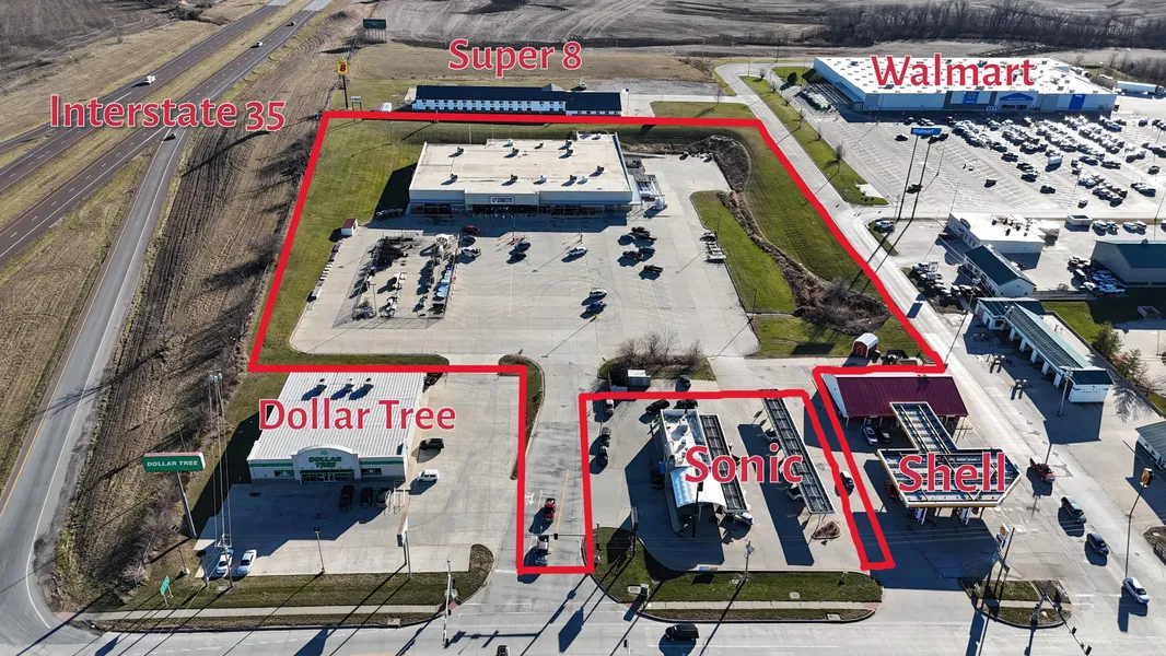 Prime Commercial Investment Opportunity! This property is currently new 10 year-NNN Hybrid lease with National Tenant, Tractor Supply. The property is a standout investment opportunity, perfectly positioned on an expansive 8.5-acre lot in a high-traffic area with Interstate 35 exposure. The site features a fully paved parking lot equipped with bright, modern parking lot lights, ensuring safety and convenience for customers. The building, which was repainted just six years ago, boasts a newer roof. Recent upgrades include new concrete sidewalks and entryways, enhancing curb appeal and accessibility. Located in a prime area near Walmart and with convenient access to Interstate 35, the property enjoys exceptional visibility and customer draw. This high-demand location ensures steady foot traffic and ongoing business growth. Dont miss your chance to own a reliable, income-generating property in a sought-after location!