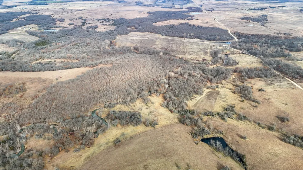 This 398.5 +/- acre property is in Chautauqua County, Kansas just west of Elk City, Kansas. This farm is jam-packed with diversity with everything from big timber-lined creek bottoms, multiple ponds, 50 +/- feet of elevation change throughout the farm, multiple pockets and pinch points, and plenty of hardwoods. This property also includes a 2 bed 1 bath home/hunting cabin that has been redone on the interior for a great place to stay while hunting. When on the farm you will notice a trail system that allows you to stay on the farm and travel to all sides without getting on a public road. The access is great all the way around and with the house on the east side of the farm, you have a great advantage with wind. Walking the property there were multiple scrapes and rubs everywhere you looked, as well as trails. The whitetail population in the area is phenomenal, as well as the genetic makeup. One of the big benefits to the farm is how it hunts differently from the north to the south side. The north side of the farm has big creek bottoms and great hardwood timber but also has an open grass field on the top side. The south side of the farm has great ridges to hunt as well as Salt Creek that winds through it. The terrain lends well to growing and holding big mature whitetail. There are multiple food plots as well as two Redneck blinds and two 2,000-pound automatic feeders that will stay with the property. If you are interested in viewing the farm or for more details, please contact Ben Jacks today!