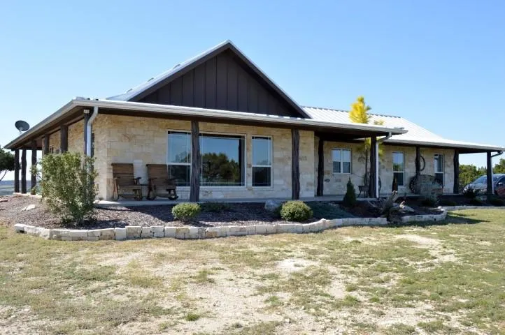237 CR 4275 - Clifton, Texas - This pristine custom rock home built in 2011 comes with 6 acres and carries the name "On The Rocks". The ranch style home sits on top of a hill with 180 degree magnificent views. The living room, kitchen and dining room all roll in together for the open-concept feel. The living room has vaulted ceilings accented with wooden beams, the kitchen has granite counter tops, stainless steel appliances and an island with bar stools for extra seating. There is ample storage with custom built cabinets. Enjoy the views from every direction in the main area. The master bedroom has room for a king size bed and sitting area & has a walk in closet with custom shelving. The master bathroom is complete with dual sinks, a beautiful claw foot tub & a walk-in tile shower. There are 2 additional bedrooms with large closets & fabulous views. The 2nd bathroom has a tile walk in shower, granite counter top and plenty of room for storage. The outside of the home is surrounded by wrap around porches with room for rocking chairs to sit and enjoy the views from all sides. The back yard has an extended patio with a wood burning fire pit and stone water fall. Upgrades include: metal roof, radiant barrier roof in attic, gas stove & water heater, 16.3 seer heat pump/AC, stained concrete floors & stone exterior walls with 2x6 ext. framing & insulation. This beautiful home can be shown by appointment: Call Tonya Albrecht (254) 709-5410 or Lucy Santillan (254) 548-1817.