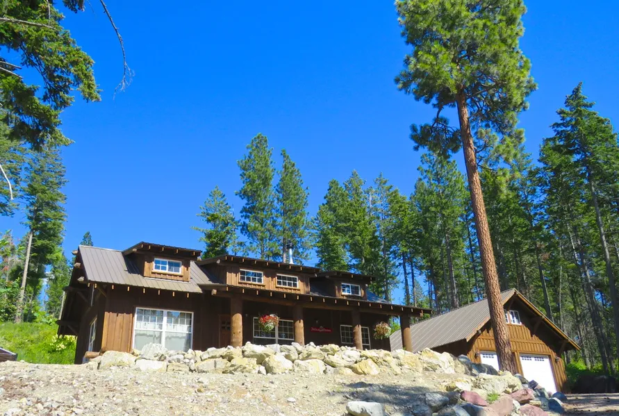 Delightful, custom built, rustic Montana home with Flathead Lake views! Featuring locally harvested post & beam structure, hardwood floors, t&g vaulted ceilings, log railings, and 2 master suites on the main level, this home has an open floor plan. There is plenty of guest space and storage, with an additional studio above the garage! Enjoy the lake views and glorious sunsets from the picture windows inside or relaxing on the brand new landscaping outside. Situated in an ideal location for recreation - state land hiking is right out the back door, and Yellow Bay and Blue Bay (both with public parks, beaches, and boat launches) are nearby. Wildlife abounds! State leased land.