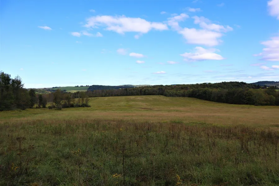 Spectacular views and hunting in Woodhull from this 860 sqft cabin on the mountain. Well known for quality deer hunting Steuben county boasts many record deer from this part of the county. Enjoy a warm cup of coffee with your hunting crew before heading out on a day's hunt in the fall, or take in the views of fall color from this hidden mountain top cabin. Open concept in design, there is a covered front porch waiting for you to relax and watch the deer in the fields below. Powered by a generator, and designed to be off-grid but with modern conveniences, there is a full bathroom with an on-demand hot water shower, an open kitchen, and a great room with all the bedrooms upstairs in a loft arrangement for families or for camp members. A carport is built in for dry storage of vehicles, a buck pole or could be expanded to more deck or living space with a little creativity. The approach to the top of the mountain comes north off of CR 83 and opens to a majestic field looking east, where the view is a 20-mile vista of rolling fields and woods. Currently, the 45 acres field is fallow and goldenrod, but could easily be put into production or used for food plots for strategic hunting. The woods are mixed, but mostly hardwoods with a large inventory of maple. Recent logging opened the woods with some logging roads for easy access. The local community knows well the history and abundance of deer here and would be a great destination camp. Only 1.68 miles west of the town of Woodhull, gas and conveniences are nearby, while the larger towns of Addison and Corning are a short trip east. Check this one out, priced well, and just in time for the season!