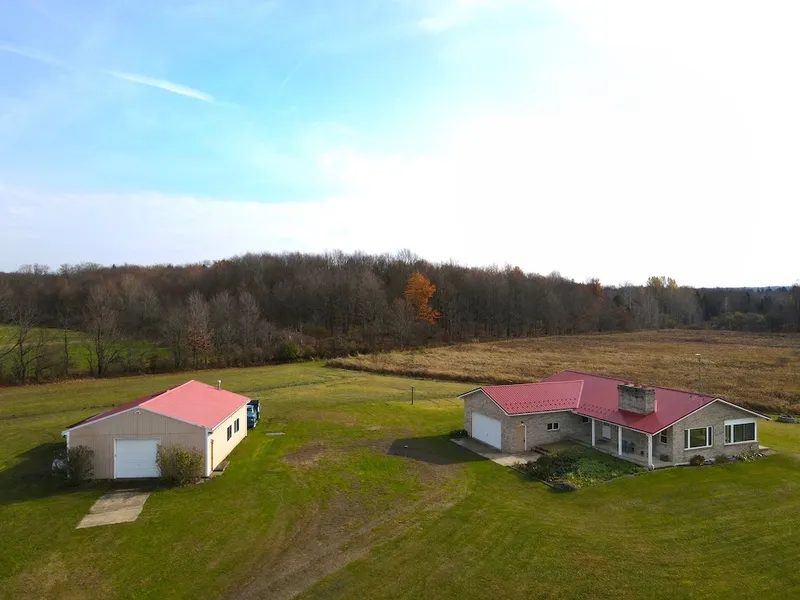 We are pleased to present a beautiful country living property privately tucked away on a hilltop in Stockton, NY. Located just 4.5 miles west of Cassadaga, you will find a private driveway coursing south across a bridge a quarter mile to reveal a wonderful 1,436 square foot ranch home not seen from the road. Upon approach, country living seekers will immediately be warmed by the privacy and serenity of this location. With views for miles and 3.7 acres of lawn, the open space with vista views are the welcome home features you'll look forward to everyday. The stone driveway opens to a brick-sided 2 bedroom, 3 bathroom ranch professionally landscaped with flower beds and a groomed yard. Hay fields and woods surround your retreat, providing even more solitude and privacy for a nature-scape not often found. Complimenting the home is a large insulated 40' x 32' workshop/ garage with its own heat and power and concrete floor for your hobby equipment or recreational vehicles. The home (1996) is custom built with enjoying outdoor spaces in mind. The brick home is well constructed with a steel beam, concrete foundation and a metal roof. The covered front porch is a great place to start your morning with a coffee overlooking the land, while the rear patio may be a quiet place to sip an iced tea in the summer. There is also a large sunroom on board to the kitchen with double sliding glass doors and windows to bring the outside inside in cooler weather. You may even call this the dining room, which is a wonderful place to enjoy meals while looking out over the property. The kitchen is well organized, with plenty of counter and cabinet space. A unique feature is a pass-through window from the kitchen to the great room. The great room has a vaulted ceiling with a skylight, is open in design, and has a gas fireplace with a fieldstone hearth and mantle. The bedrooms are large and have plenty of extra space for furniture. The owner's bedroom has a large closet and ensuite bathroom. The basement is a blank canvas for extra space. The main room could be used for a media room, rec room, hobbies or gaming. It has its own gas fireplace, too. There is a lower-level bathroom and a third room for living space for an office. Currently, it is set to be an overflow bedroom for guests. Deer abound here if pursuing them is your interest. There are mixed hardwoods, lowland early succession growth and a myriad of fields for bedding cover and food. A robust trail network serviceable by ATVs is part of the landscape, making access to all corners of the property a breeze. There may be some timber value as the last cutting was 15-20 years ago, and hardwoods, maple, cherry and oak were observed. There is a gas well on the property, which provides 200,000 cubic feet of free gas for the homeowner annually. The home has newer mechanicals, and the Septic and Well testing has been completed and approved by the CCHD for worry-free transfer of ownership. With country living being so popular, it is rare to find privacy, a custom home, and acreage in one destination. Call us today for a showing. Priced well to sell! ADDITIONAL INFORMATION: 1,436 Sq ft Brick-sided home w attached garage, FREE Gas, 2 Bedrooms, 3 Bathrooms, Finished Basement w possible bedroom (no egress), 1996 Custom Build, Metal Roof, Two Gas Fireplaces, Florida Room (Bonus), Furnace and AC, Garage/shop - Detached 576 sq ft w heater, Stone Driveway, Tillable Dry Acres - Rental Income, Woods, Deer Hunting- excellent, 68" Firepit, Well, Septic, Country living, Views & Privacy, ATV Trails, 4.5 miles to Casadaga, NY, 2.3 miles to Bear Lake, 7.3 miles to Sinclairville, NY, 7.4 miles to Mayville, NY, 10 miles to Fredonia, NY. Agents must be present for showings. Sold AS IS. Disclaimer: Map illustrations are for reference purposes only and not the representations of the Listing Agent or brokerage, Whitetail Properties Real Estate LLC. Illustrations are provided by Land ID.