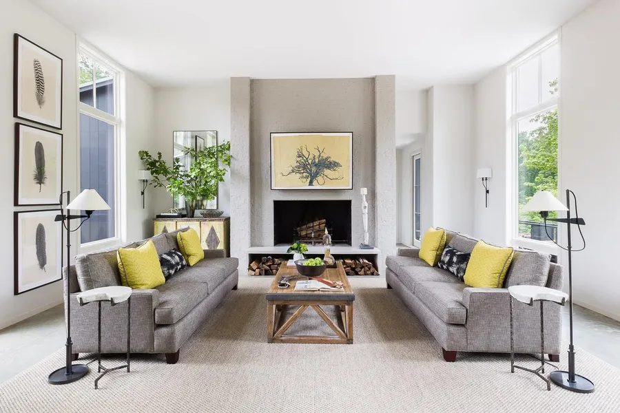 A Modern Farmhouse was started in 2015 and was built by Hank Hill Custom Building. Completed in 2016, the Farmhouse, consisting of 3500+ sq. feet, was designed by Jeff Edwards/J. D. Caldwell and Greg Baudoin. The Farmhouse features a black cypress exterior with a metal roof, 12' floor to ceiling windows, concrete and reclaimed white oak flooring and a geothermal system designed and installed by Walter Nelms/Engineered Comfort. Greg Baudoin Interior Design's floor and lighting plan is accentuated with a Lutron LED Lighting system. Greg's fabulous talent shows through as well in the wonderful interior design of the Farmhouse. Westmoreland Custom Cabinetry, custom steel fireplace caps as well as steel firewood boxes and planters, and a custom concrete bench and sink are just a few of the extra special touches adding to the finishes of the Farmhouse. A 60" raised fireplace centers the living area of the Farmhouse. A hard wired and Sonos system provides high quality music and television enjoyment. The custom made steel bell tower is the signature icon for The FARM!