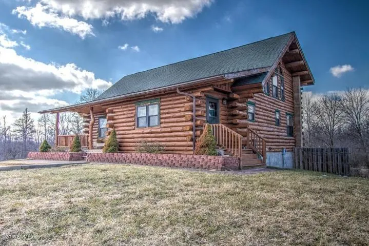Privacy on 3 Acres! If you are looking for a well built log home this is a MUST SEE. Built in 2000 this home boasts 3,000+SQFT of living space including an upper level master plus another upper bedroom with loft area. Main floor features bedroom, full bath and laundry area, large front entry area, dining area and open living room concept, updated kitchen and FANTASTIC log beams and stairway. Lots of daylight windows and vaulted ceiling living area make this home feel cozy. And what a view out the back yard! The lower level, walk out, offers fantastic finished living space. Less than 1 mile to a paved road, you will appreciate the privacy and location of this property. Tamarack Valley nature center owns the 56 acres surrounding this property. A MUST SEE! Call today!