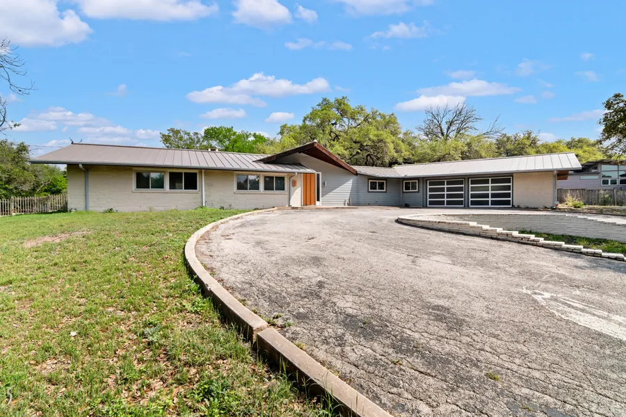 Mid Century Modern on 1.5 privately gated acres in Alamo Heights ISD. One story home sits at the highest point in the property, surrounded by oaks, patios, a hot tub and pool with limestone coping/steps, and a regulation sized tennis court in great shape with lights. Study/office was originally the 4th bedroom (attached to a full bath, easy conversion if needed). Terrazzo floors, walls of windows and sliding doors, original St. Charles cabinetry in the kitchen is a sweet touch from the 1955 construction. Split layout lends to a very private primary suite with sliding glass doors on three sides and a covered patio with hot tub just outside the primary's sitting room. Large walk-in closet, and a light-filled bathroom with walk-in shower. One of the secondary bedrooms has a large en-suite bathroom. Patios surround much of the home, including both sides of the living/dining area. Two-car ove...
