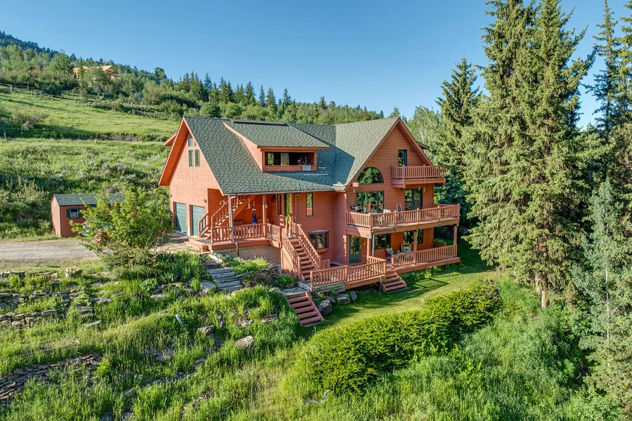 Less than twenty minutes south of town and bordered on two sides by National Forest, this home on 2.5 acres offers three private entrances—providing ample space for guests and extended family to enjoy this peaceful and private mountain retreat. With a large finished basement and an apartment over the garage, rooms can be configured as desired for possible rental income opportunities. The home features plenty of natural light as floor-to-ceiling windows offer beautiful views of buttes and rock formations just outside. Multiple outdoor decks allow for easy indoor-outdoor flow while enjoying the abundance of wildlife that frequently visits the nearby year-round creek.